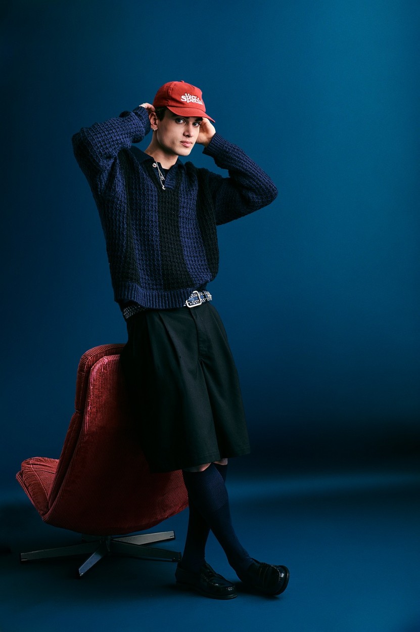 Beyond modeling, he creates and sews his own garments while continuously developing his skills in art direction, styling, and photography. Constantly creating and rarely standing still.